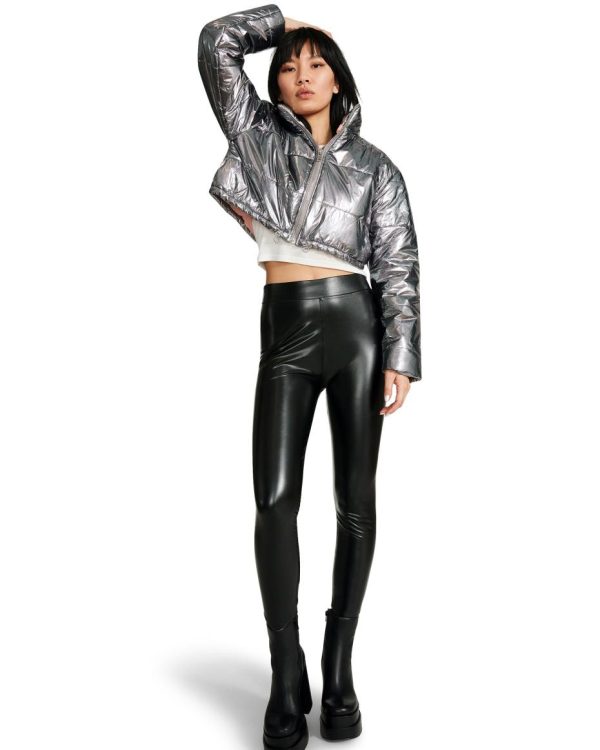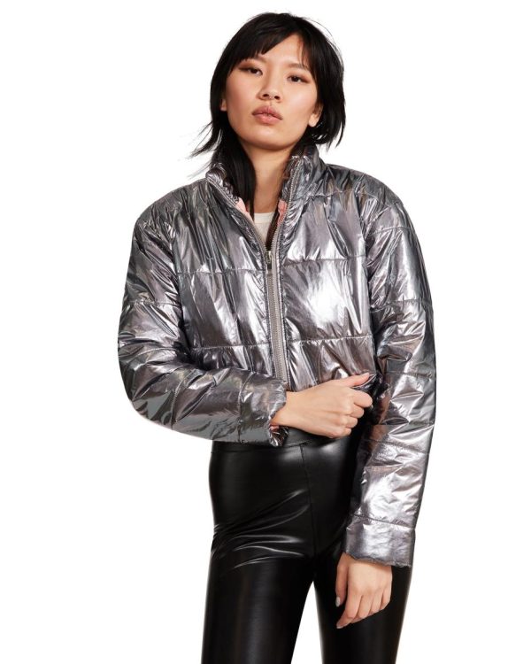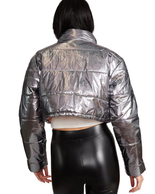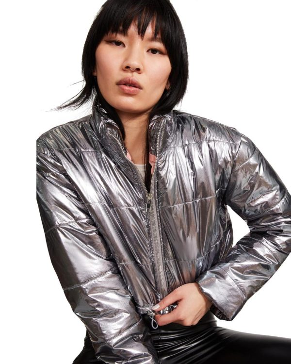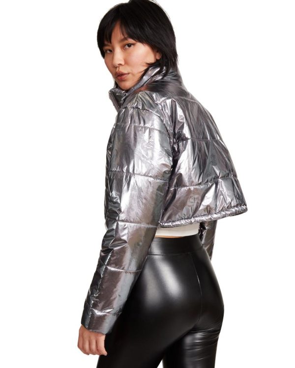 Give your outerwear options a twist with a cool cropped puffer jacket in a metallic finish.90% Nylon