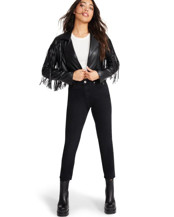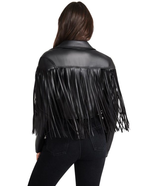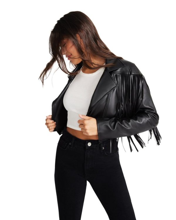 Give off major cool-girl vibes in this faux leather fringe jacket. Layer over a t-shirt and jeans or switch it up with a floral dress.