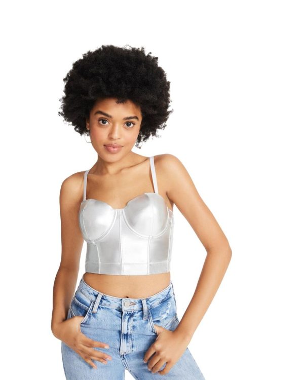 Steve Madden Metallic Bustier Silver | Womens Bralettes